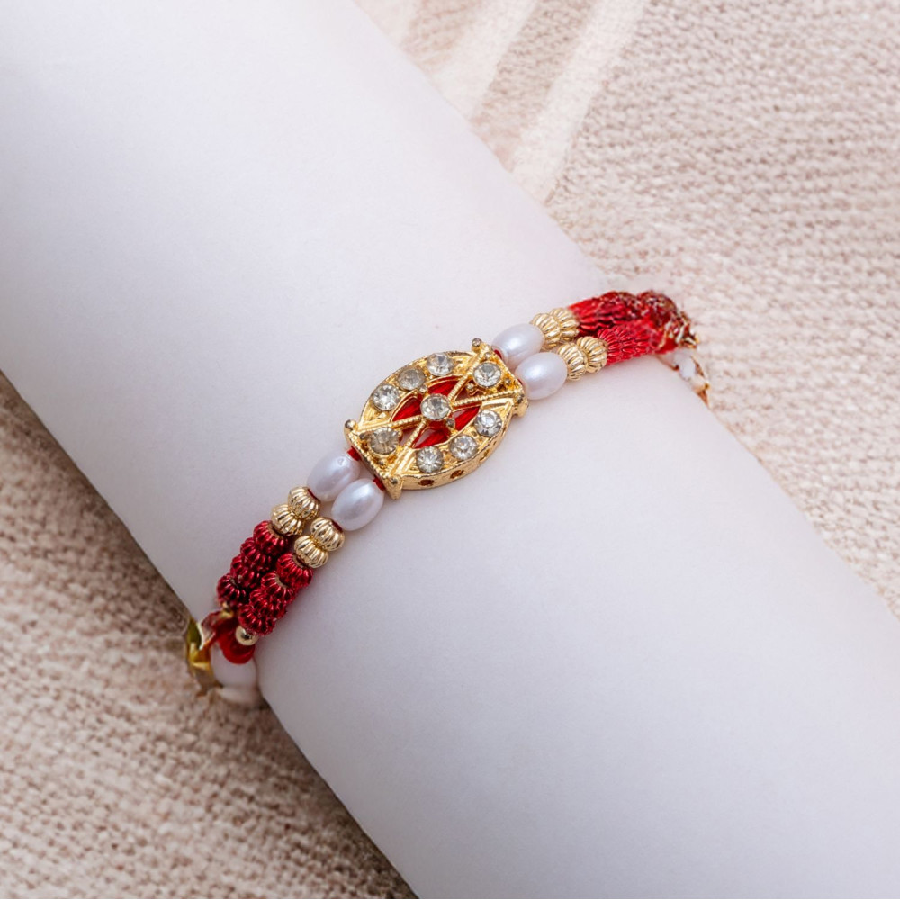 - AD, pearls and beads studded Rakhi for this auspicious Raksha Bandhan to send to your beloved brother with Tika and Chocolate.