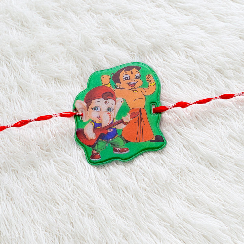 - Chota Bheem and Bal Ganesh motif Kids Rakhi for this auspicious Raksha Bandhan to send to your beloved brother with Tika, Chocolate and Sweets.