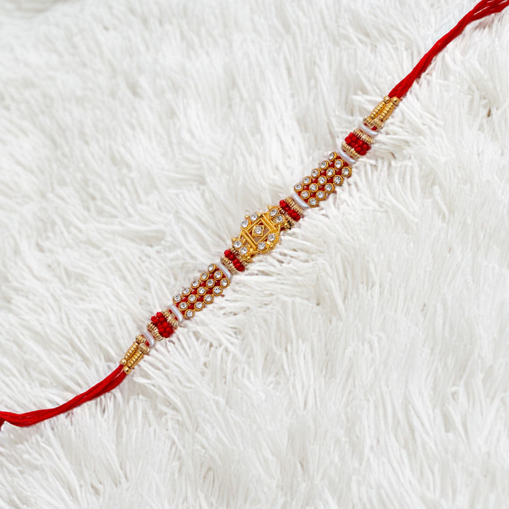 - American diamonds and beads studded Rakhi for this auspicious Raksha Bandhan to send to your beloved brother with Tika and Chocolate.