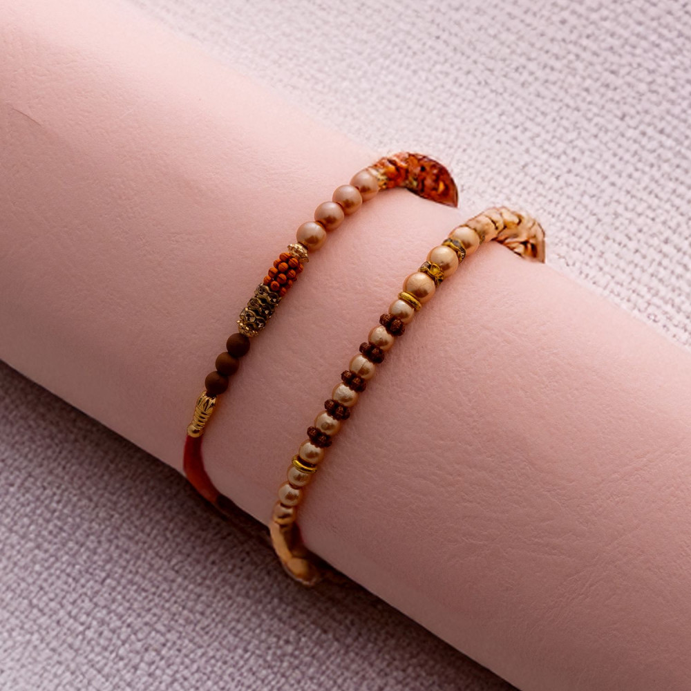 Exquisite Set of 2 Rakhis with Pearls and Beads