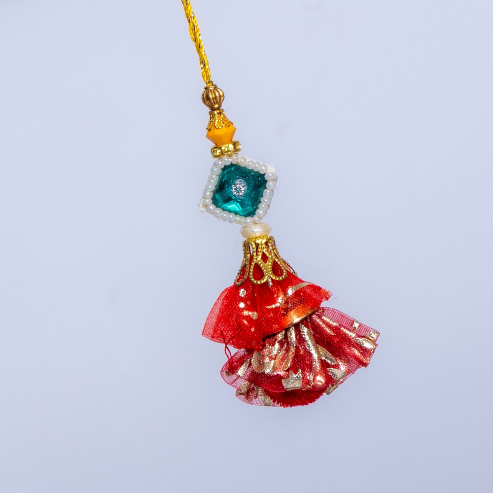 - Stone, beads and American diamonds with fancy embellishment studded Lumba Rakhi for this auspicious occasion of Raksh Bandhan.