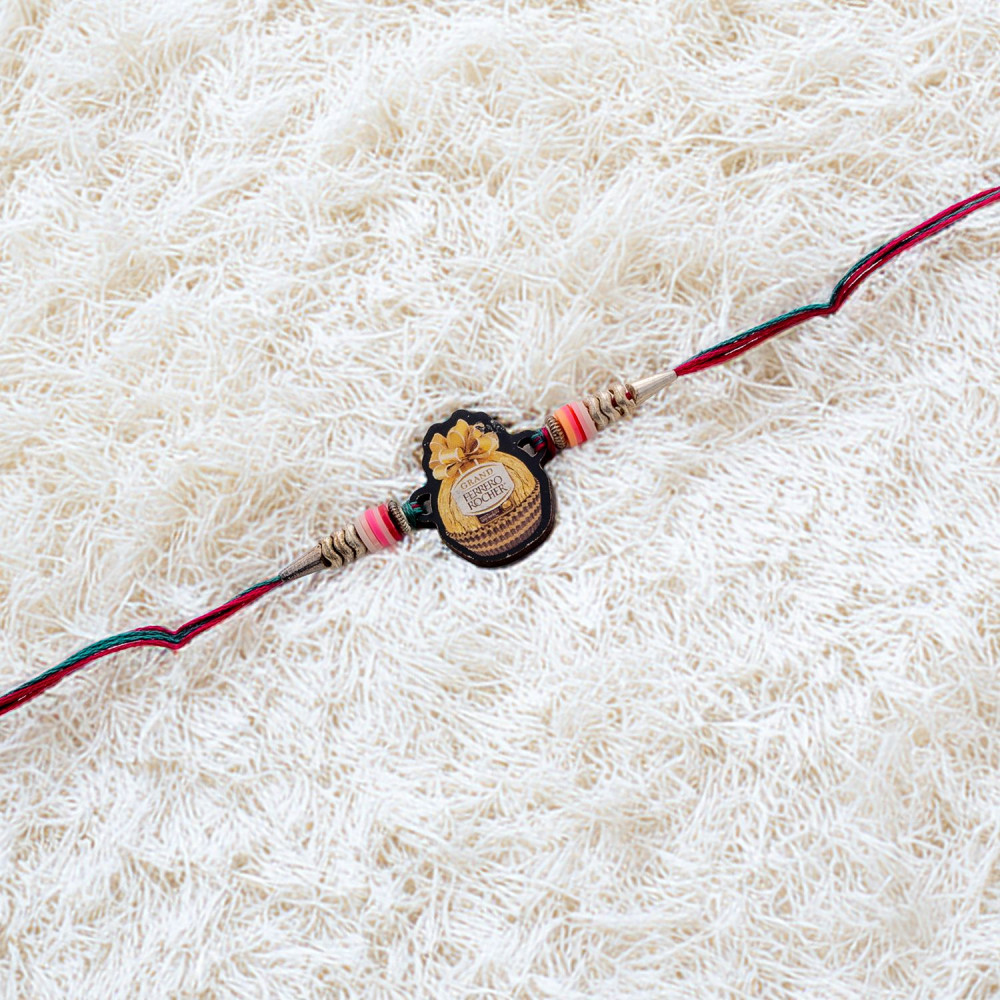 - Ferrero rocher motif with colorful beads Kids Rakhi for this auspicious Raksha Bandhan to send to your beloved brother with Tika, Chocolate and Sweets.
