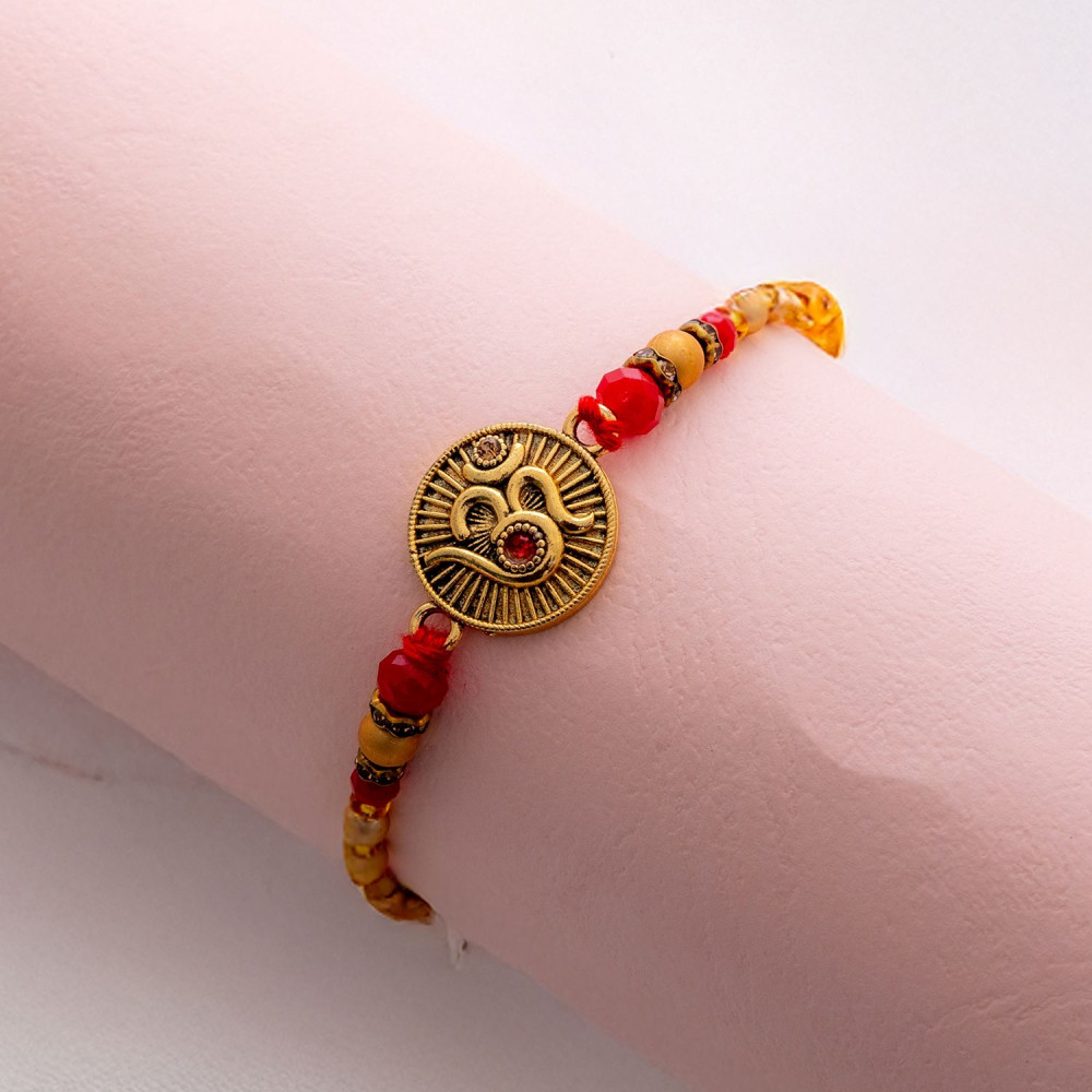 Handcrafted Beads Rakhi with Metallic Studded OM