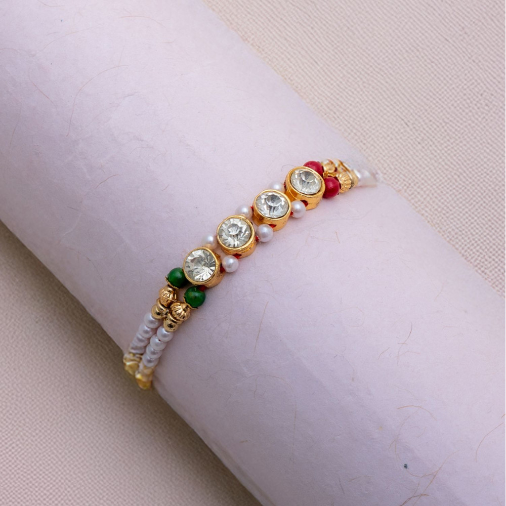 Lovely AD Multicolor Beads and Pearls Rakhi
