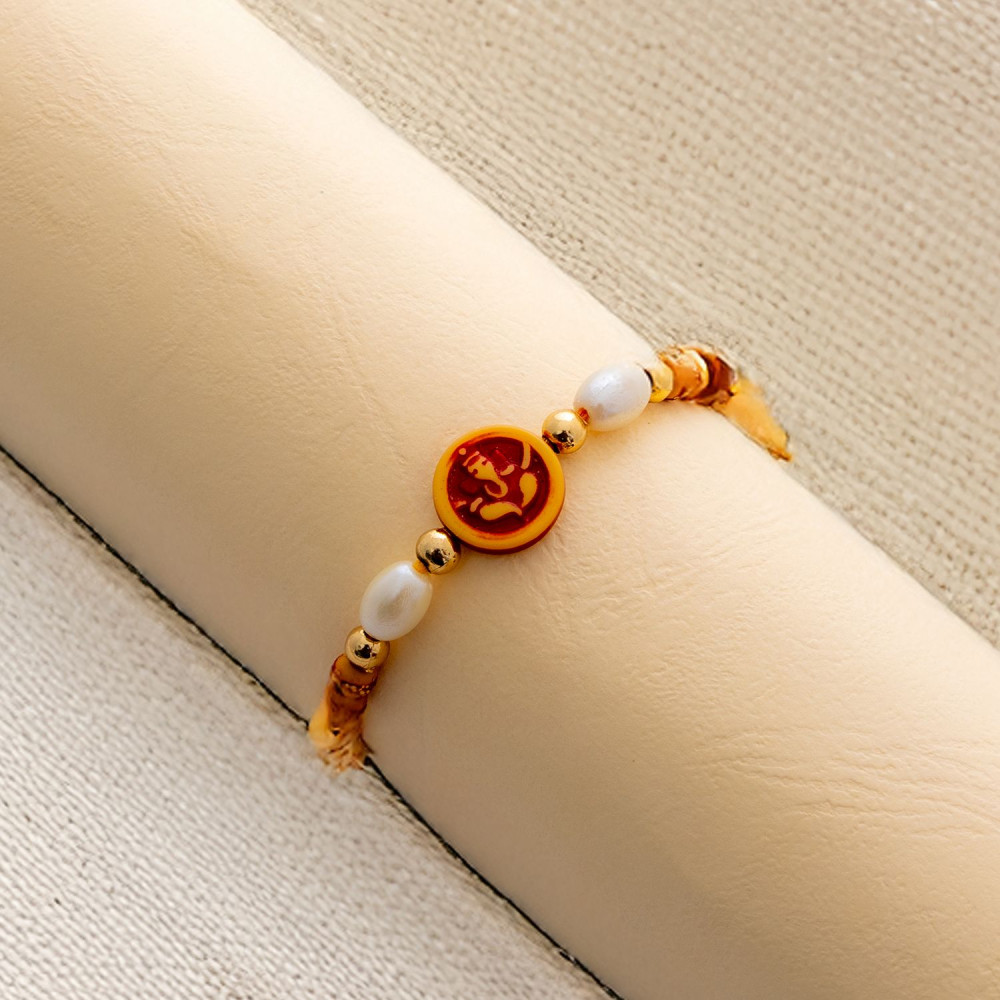 - Pearls and beads work Ganeshji Rakhi for this auspicious Raksha Bandhan to send to your beloved brother with Tika and Chocolate.