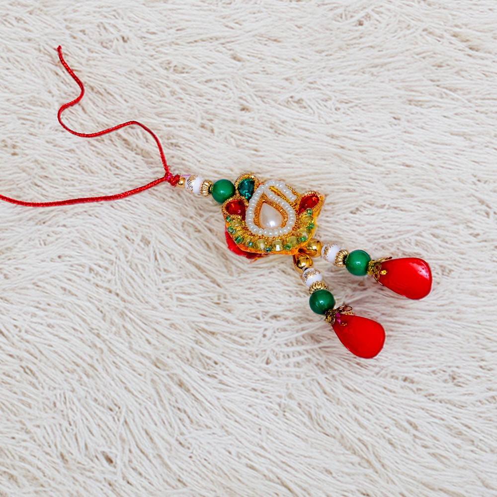 Pearls Stones and Colored Beads Work Lumba Rakhi