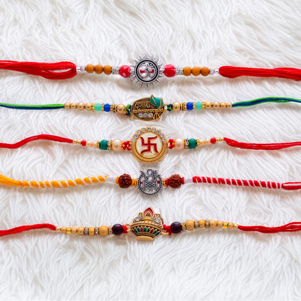 - Perfect Rakhi Gift Handcrafted Set of 5 for this auspicious occasion of Raksha Bandhan.