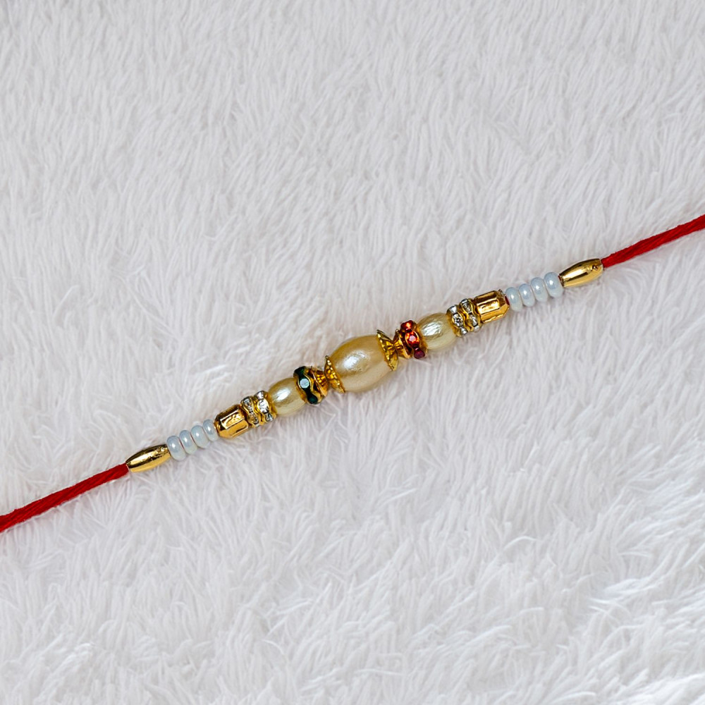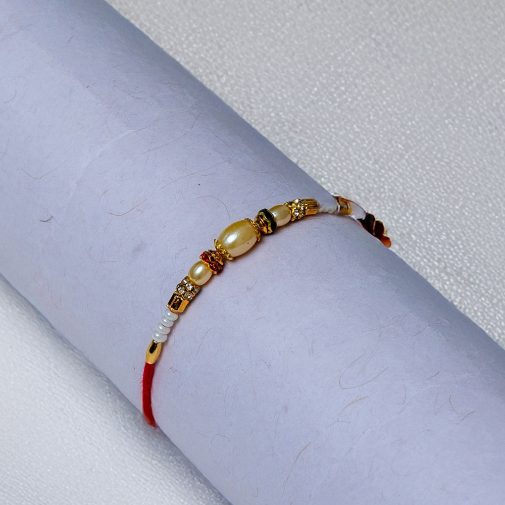 - Serene Bond Pearl Thread Rakhi for this auspicious Raksha Bandhan to send to your beloved brother with Tika and Chocolate.