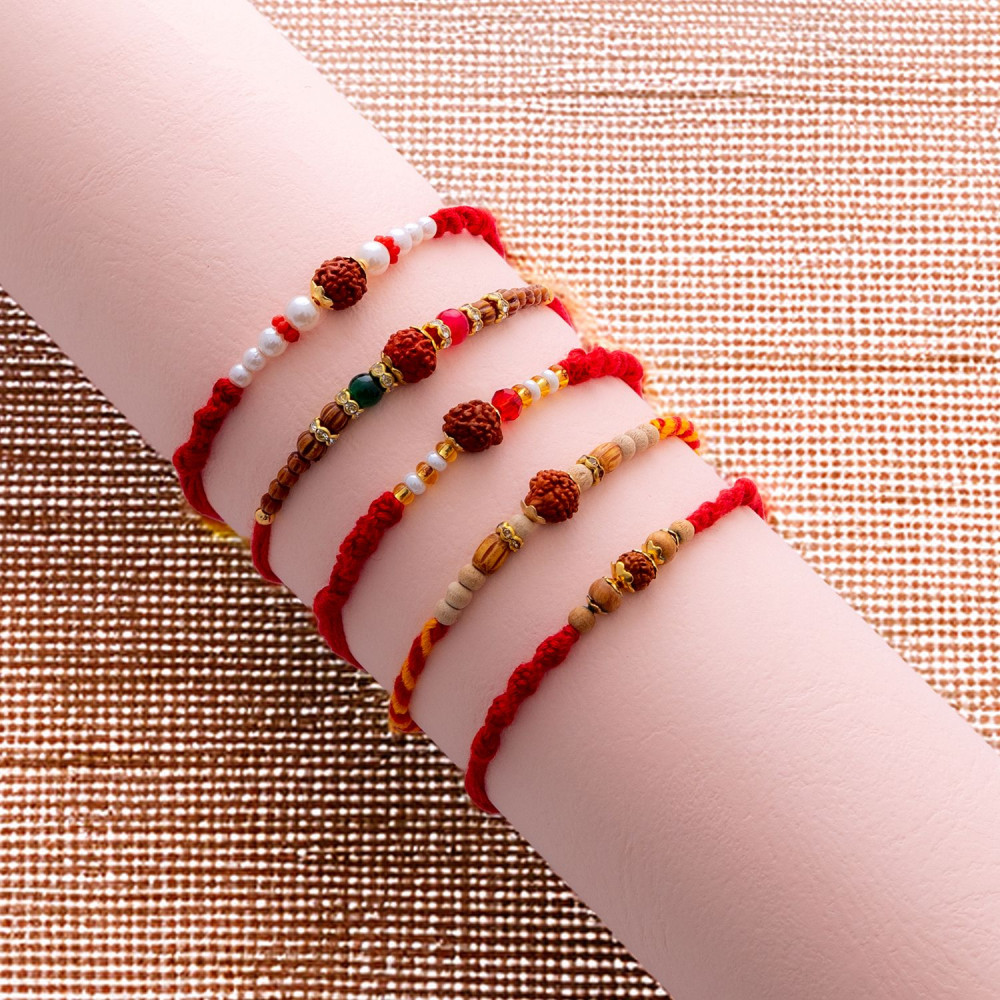 - Traditional Handcrafted Rakhi Pack of 5 for this auspicious occasion of Raksha Bandhan.