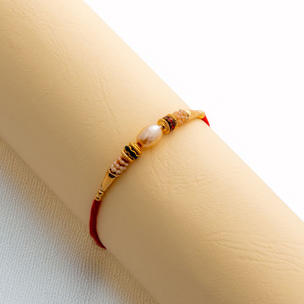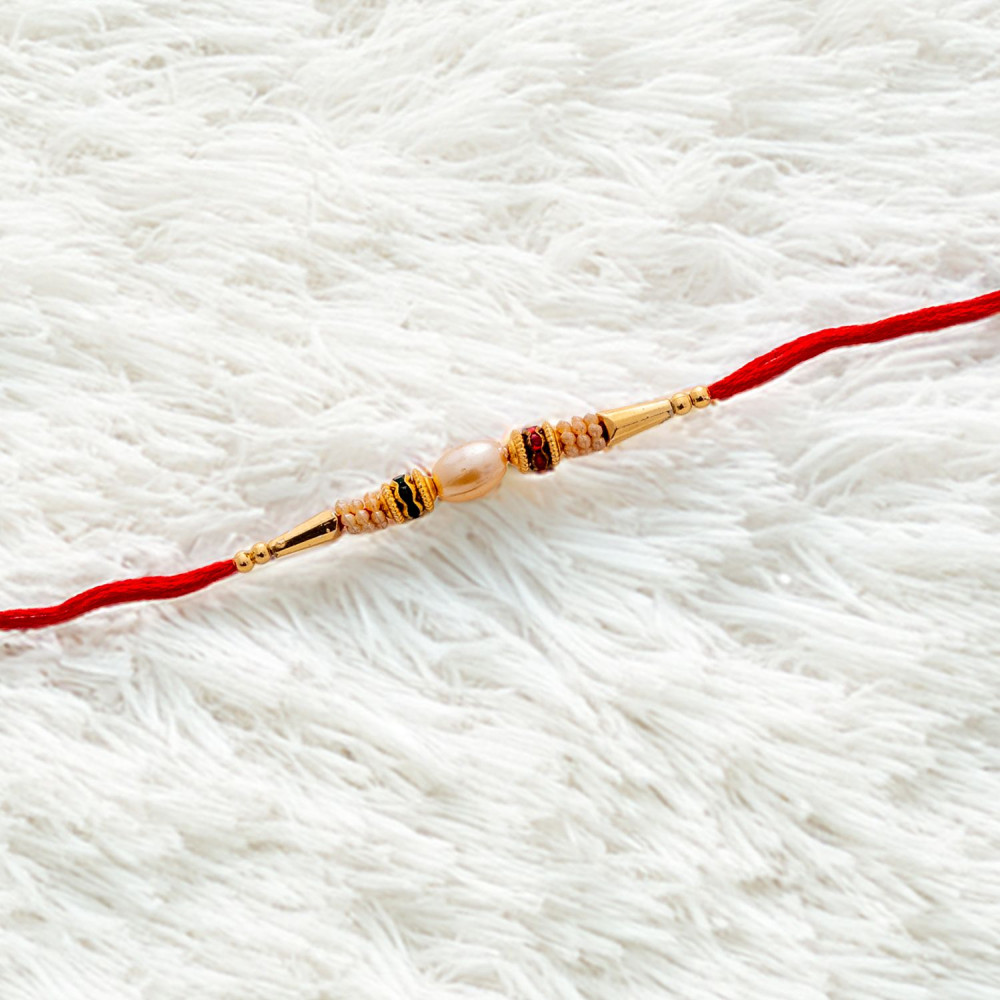 - Pearls, stones and beads Rakhi for this auspicious Raksha Bandhan to send to your beloved brother with Tika, Chocolate and Sweets.