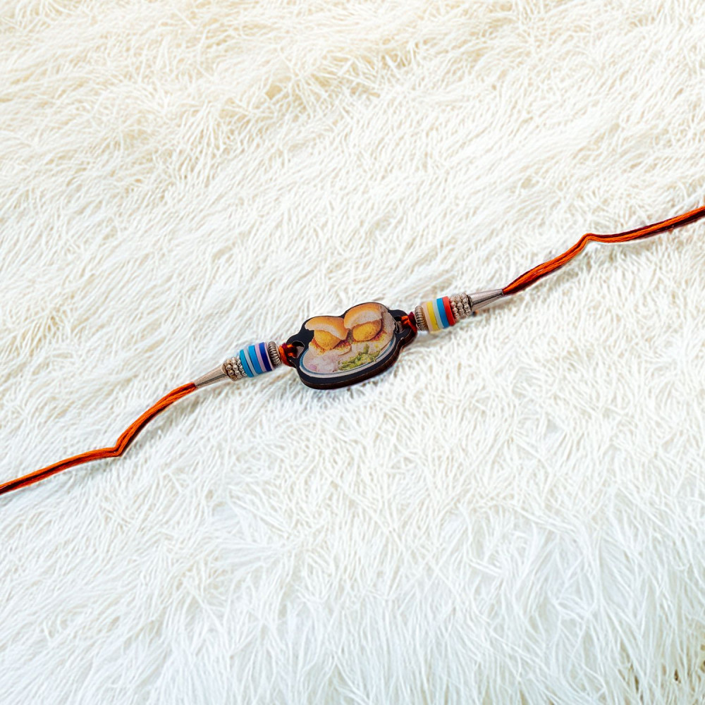 - Vadapav motif with colorful beads Kids Rakhi for this auspicious Raksha Bandhan to send to your beloved brother with Tika, Chocolate and Sweets.